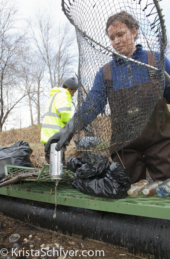 Washington DC has begun installing trash traps like this bandalong on the Watts Branch in Southeast DC.