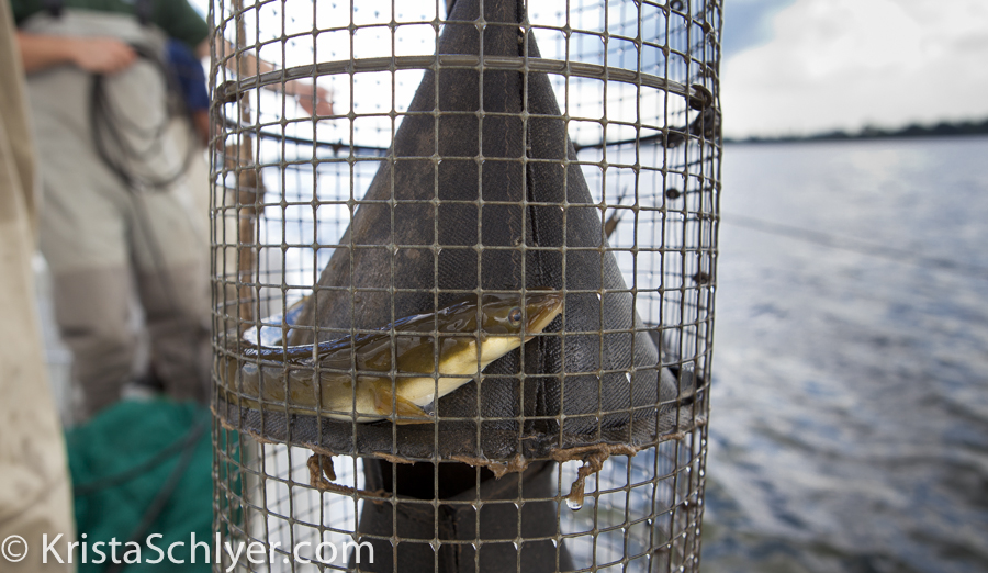 American eel are one of several species of concern in the Anacostia watershed. This one was trapped by the DC Department of Fisheries and Wildlife as part of a population study.