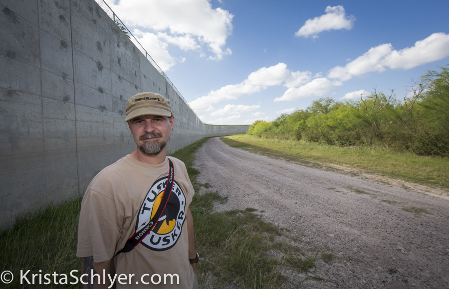 Borderlands activist Scott Nicol at the border wall.