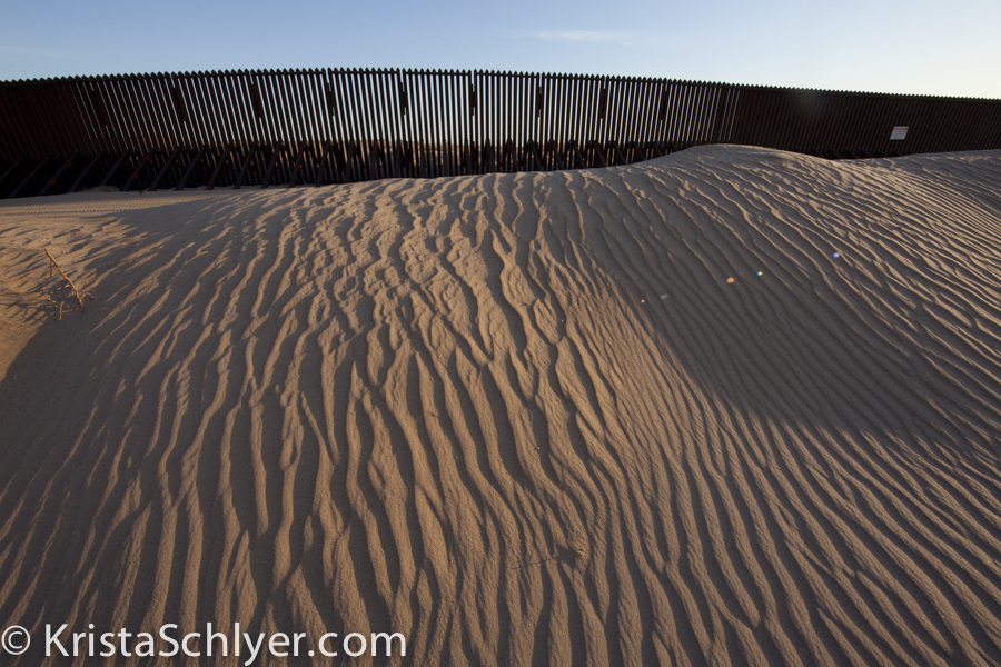Algodones dunes in Southern California, with border wall.