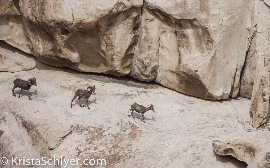 90. Bighorn sheep have become rare in the Southwestern deserts and are nearly extinct in Mexico. The best hope for their continued survival is open travel corridors. These bighorn were photographed less than a mile from the border in southwestern Arizona.