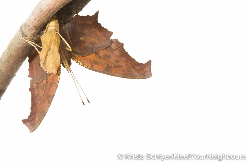 Question mark butterfly emerging
