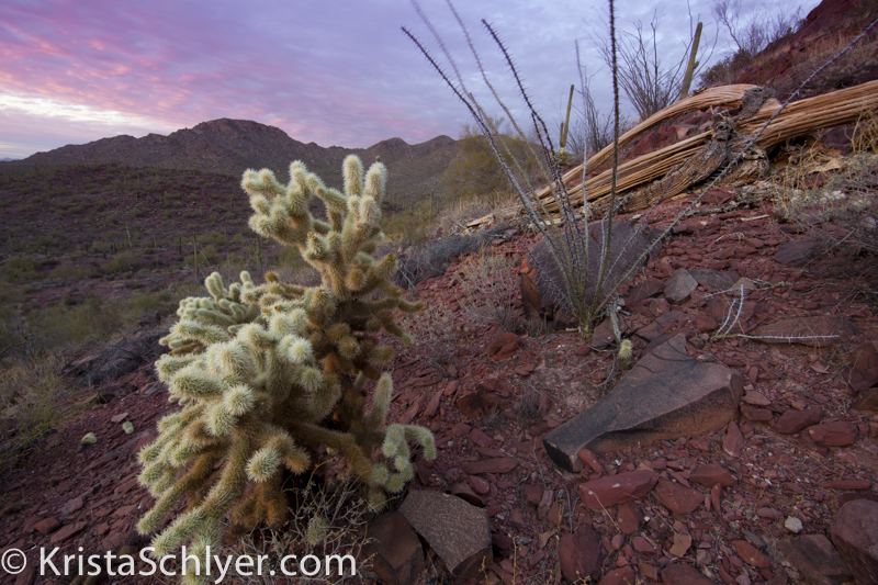 Previous Image Next Image 17. Teddy bear cholla on a mountainside in the desert. Saguaro National Park