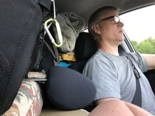 Our final trip from Dave’s house. Bill said we couldn’t get it all in one load. I begged to differ. As my reward I got to spend 45 minutes on the passenger side floor fighting off car sickness. Hooray.