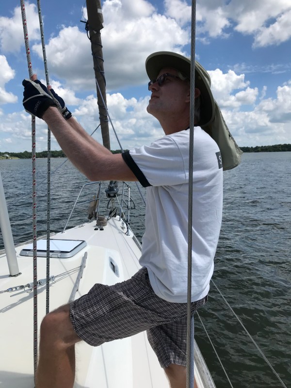 This week we have been stationary in Annapolis while Bill studies for the Captain’s exam at the Annapolis School of Seamanship and we get some projects done on MM, including yet another repair to the mainsail. This one, thankfully, is a much smaller rip that happened when the sail got caught on one of the reefing hooks. An unpleasant surprise, but pale in comparison to what has come before.